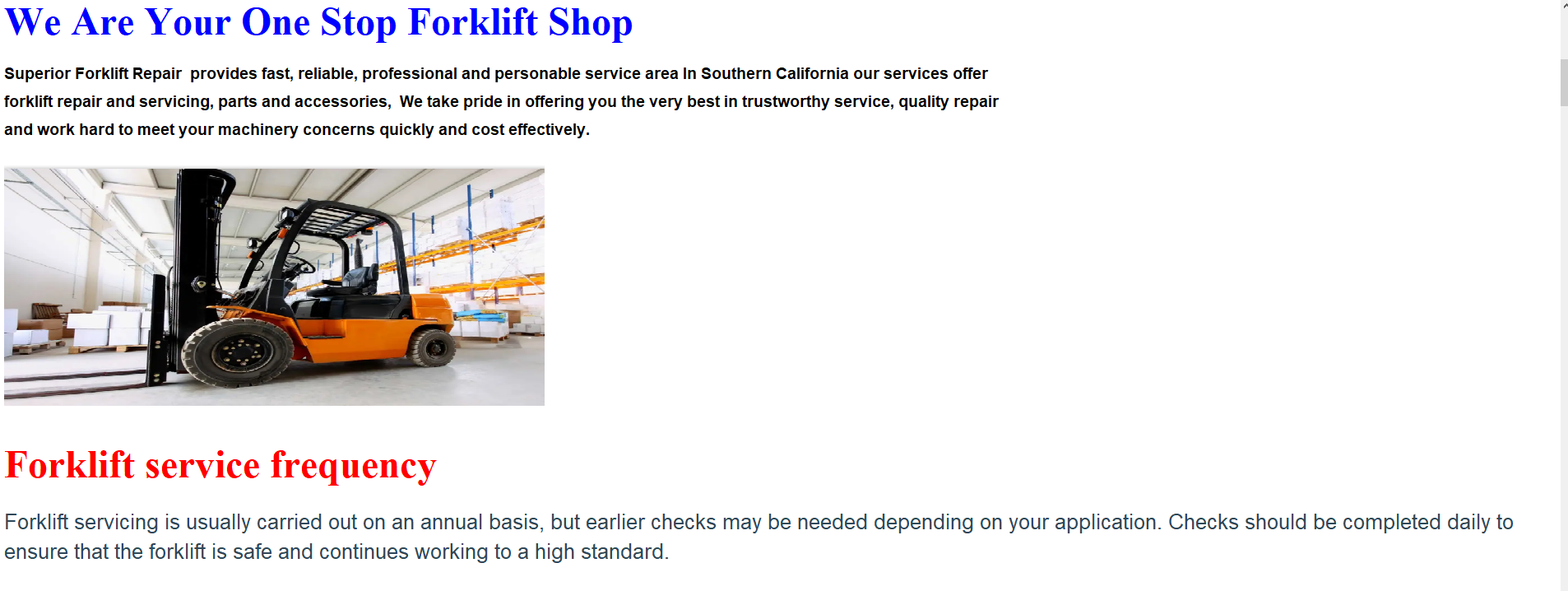 Forklift Repair San Bernardino County |